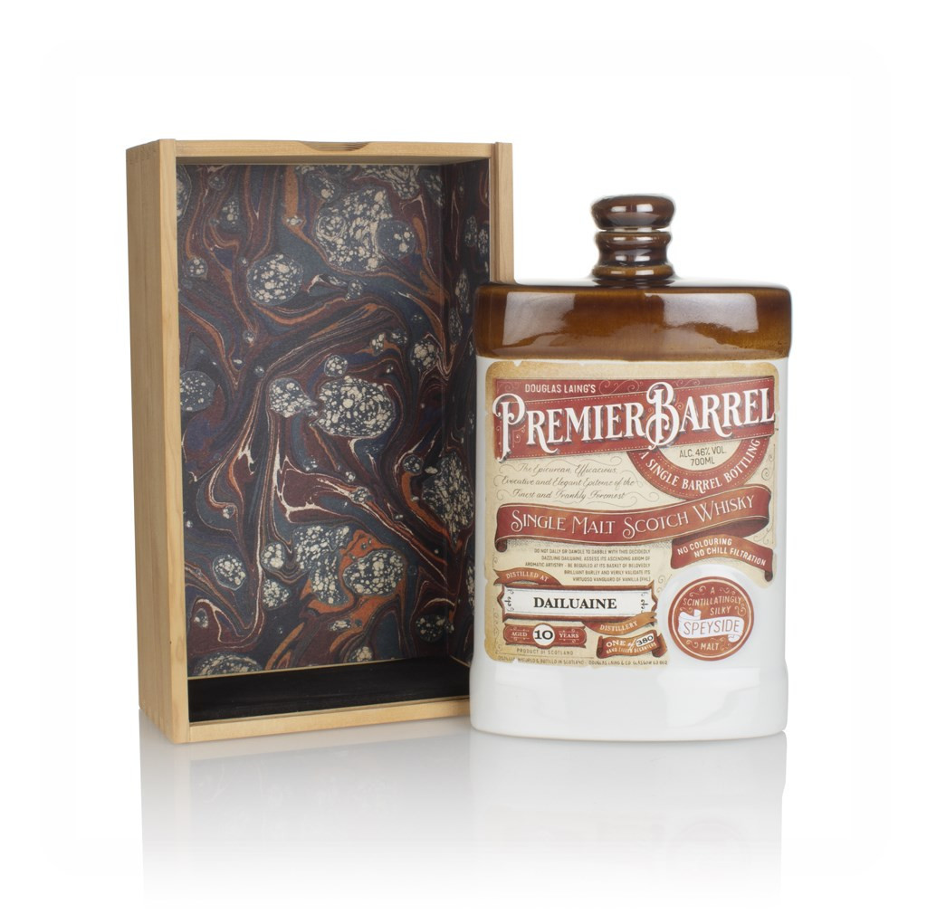 10 year old single malt from the Dailuaine Distillery, independently bottled by Douglas Laing for the Premier Barrel series. 380 of the flask-shaped bottles were produced, with labels boasting a gamut of alliterative prose upon them. Very charming stuff.