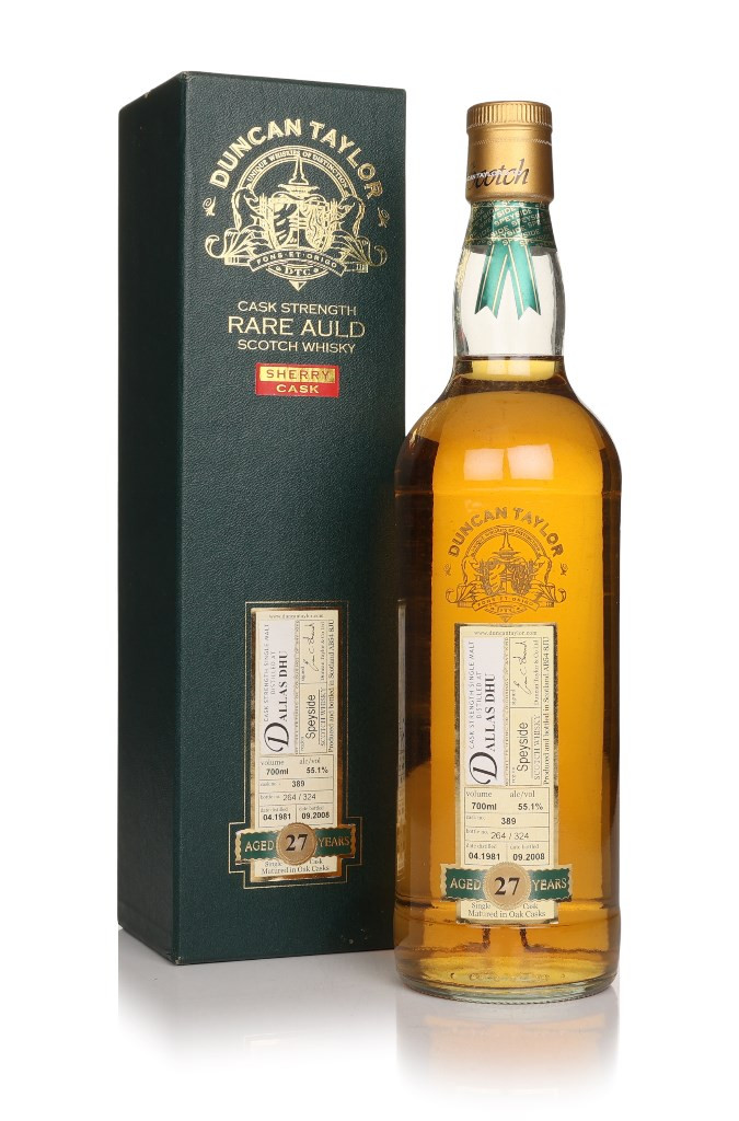 A bottling of Dallas Dhu Speyside single malt Scotch whisky, released by Duncan Taylor for its Rare Auld collection of whiskies in June 2008. It was distilled in April 1981 and aged for 27 years in a single cask (#428) which yielded 218 bottles.