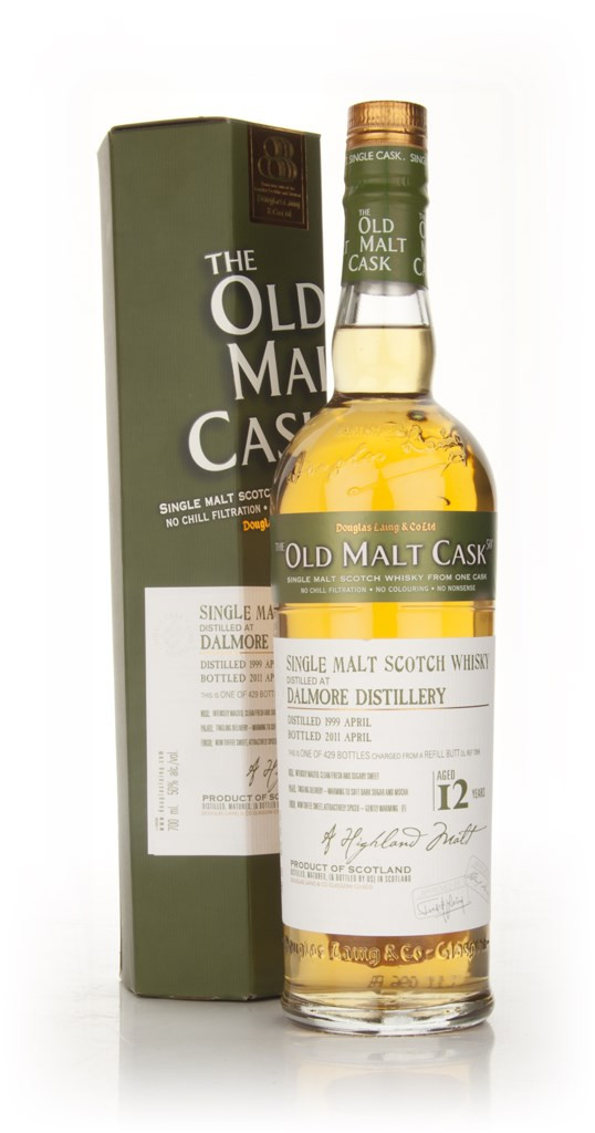 A big, spicy Dalmore bottled by Douglas Laing for their Old Malt Cask range. This was distilled in April of 1999 and was aged for 12 years in a single refill butt before bottling in April of 2011. A release of 429 bottles.