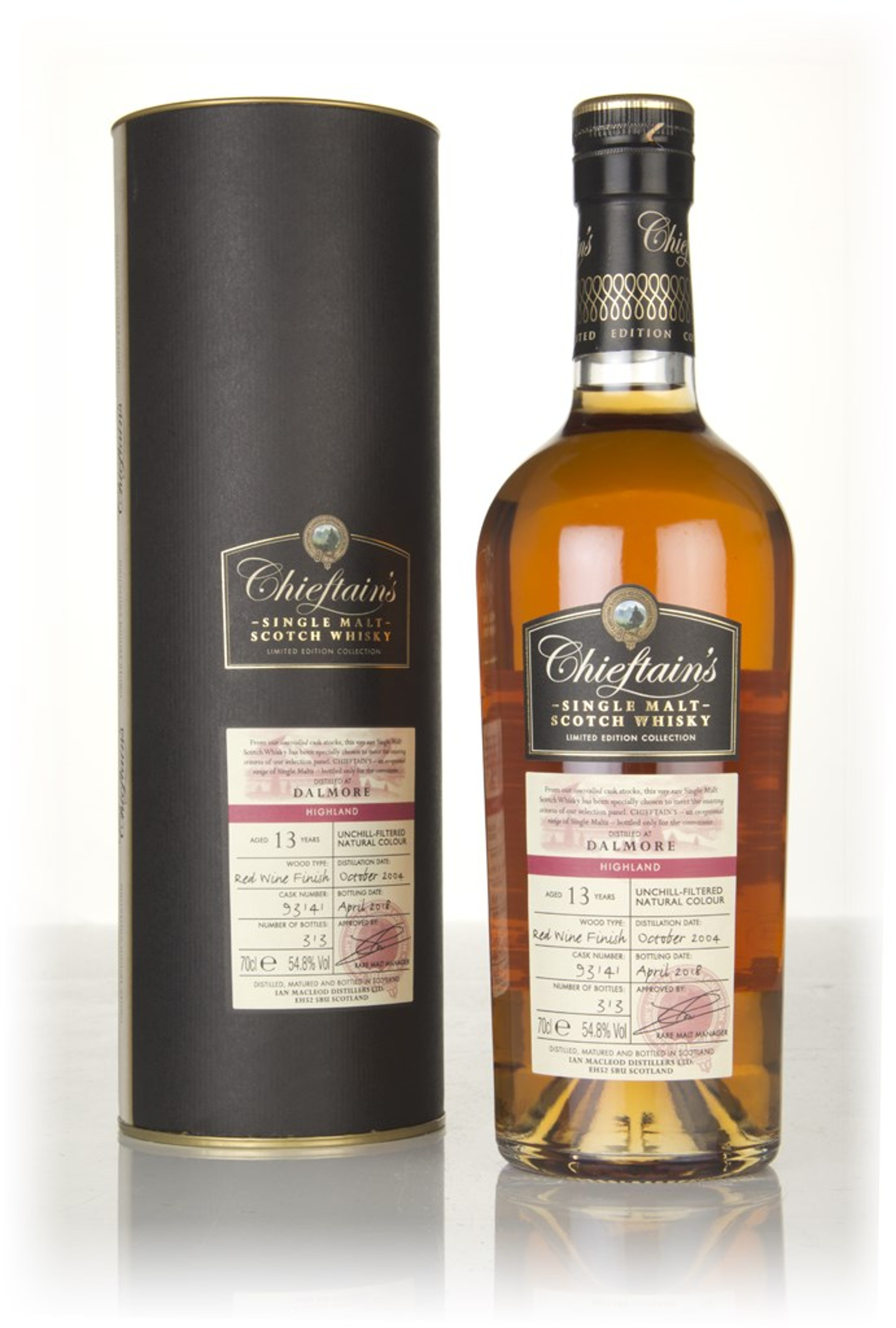 An indie Dalmore, distilled in October 2004 and bottled 13 years later in April 2018. It was bottled by Ian Macleod for the Chieftan's range at 54.8% ABV with no added colours or chill-filtration, with an outturn of 313 bottles.