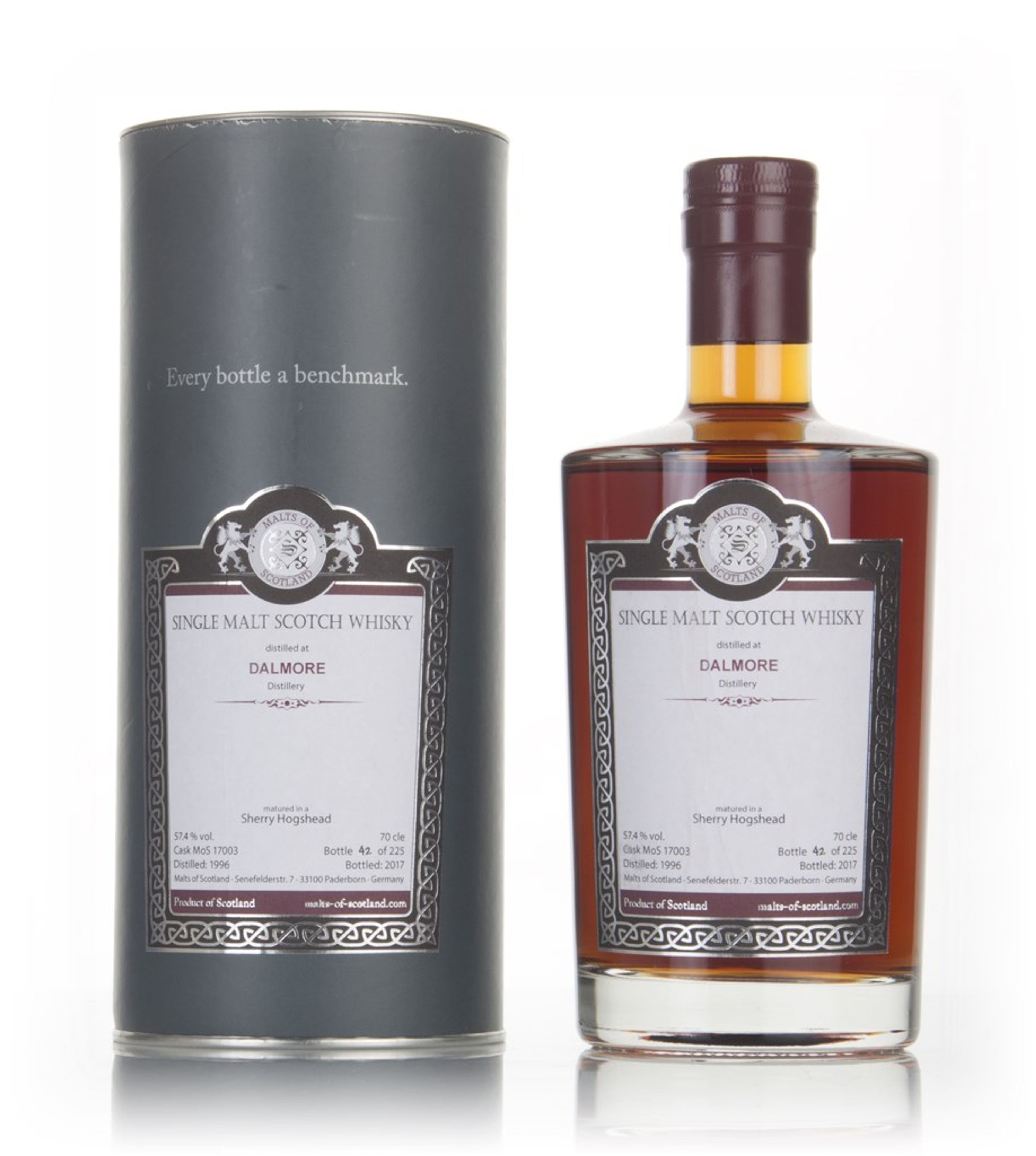Well-Sherried Dalmore, anyone? Yes please! That's exactly what we've got here - Dalmore single malt aged in a single Sherry hogshead from 1996 to 2017, independently bottled by Malts of Scotland. A release of 225 bottles.