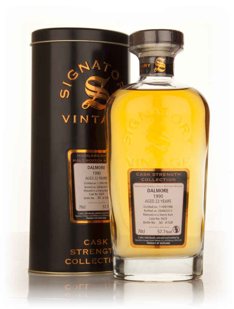A 22 year old Dalmore aged in a single Sherry butt between September 1990 and June 2013. Part of Signatory's Cask Strength Collection, 528 bottles were produced.