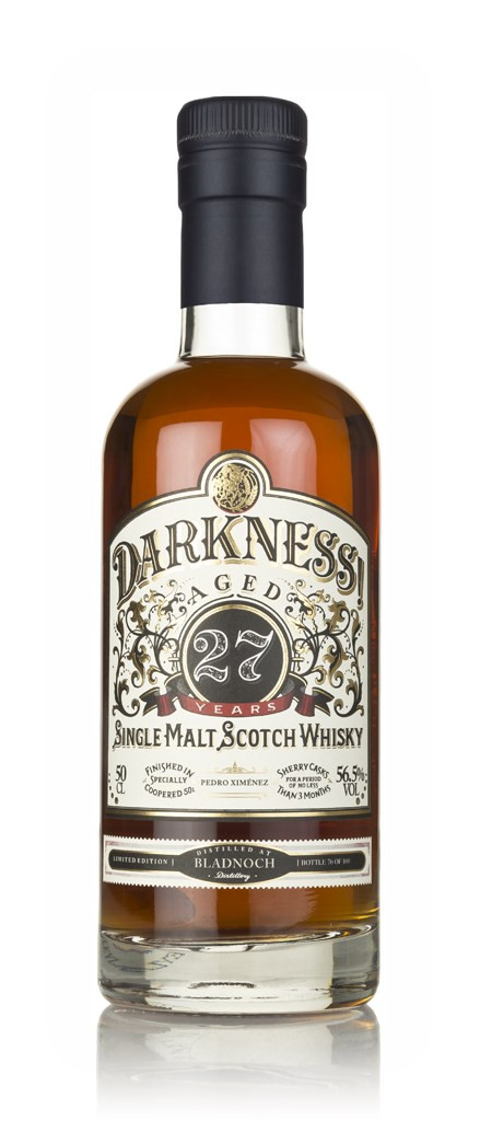 The Darkness! independent bottling range sees oodles of top-notch whiskies receive a finishing period in specially coopered, 50-litre sherry casks - these smaller casks offer a greater surface area to volume ratio than your run-of-the-mill hogshead or what-have-you, meaning more cask influence. This release from the range is a 27 year old Bladnoch single malt, finished in a tiny Pedro Ximénez cask and bottled with an equally tiny outturn of just 100 bottles.