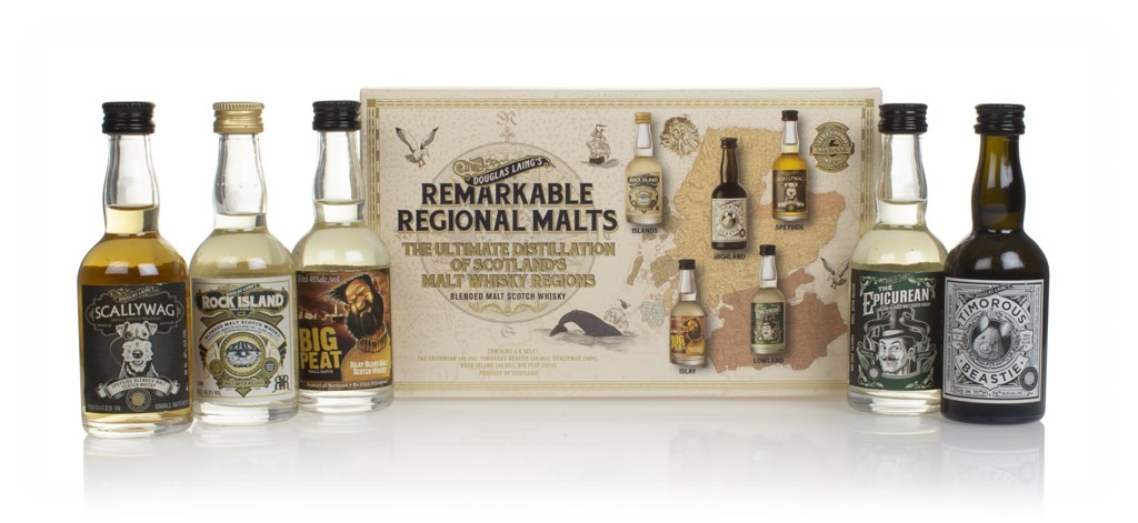 Fancy exploring Scotland's whisky-producing regions via the Douglas Laing's Remarkable Regional Malts? That's exactly what this gift pack is all about! It contains a 5cl bottle of each of the independent bottler's fabulous region-themed blended malts, including Big Peat, Timorous Beastie, The Epicurean, Scallywag and Rock Island.
