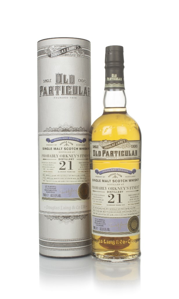 A somewhat mysterious single malt from Douglas Laing's Old Particular range. This one comes from "Probably Orkney's Finest Distillery", though with the very small number of distilleries on Orkney, you might be able to figure out which one it was from. The whisky itself was distilled in June 1999 and bottled in August 2020 after 21 years of maturation in a refill hogshead. 236 bottles were produced.