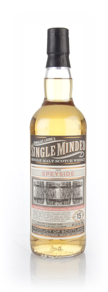 From Douglas Laing's Single Minded selection comes a 15 year old single malt Scotch whisky from a secret (though particularly well-known) distillery in the Speyside region. This is a sweet, malty single malt, rich in brown sugar, sweet spices and a touch of citrus peel along the way.
