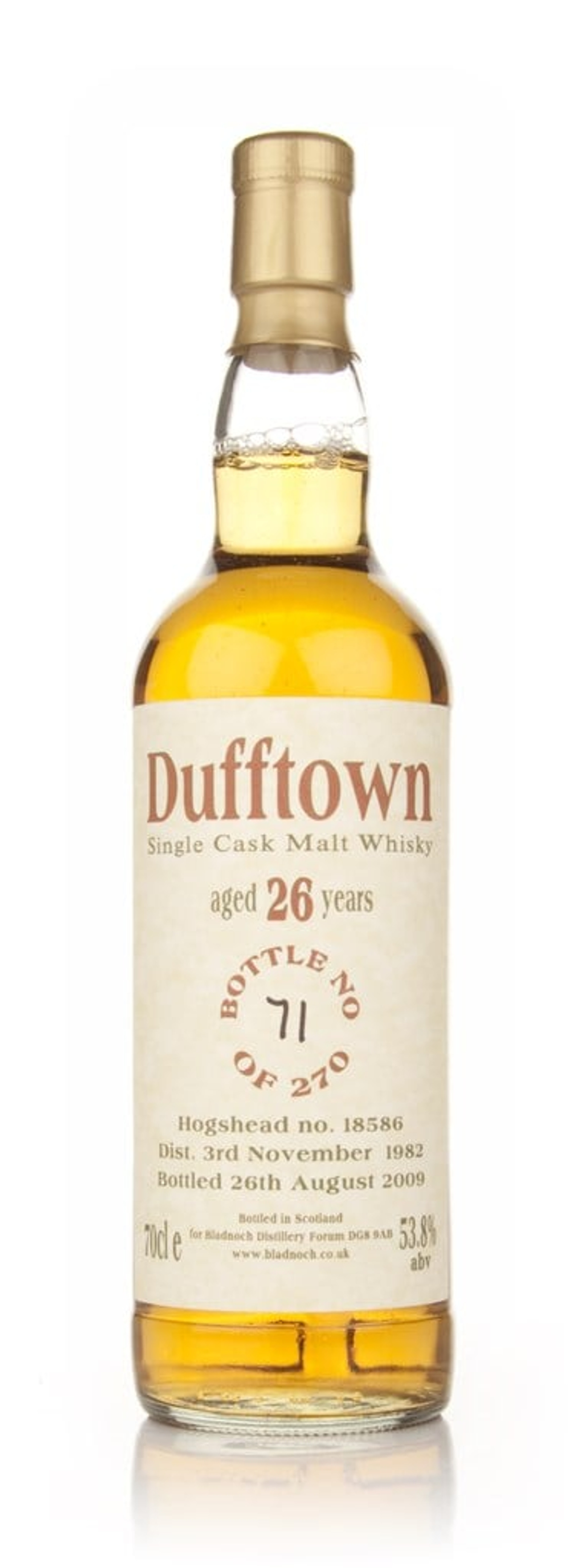 A Bladnoch forum bottling from the Dufftown distillery. This single cask was distilled on the 3rd November 1982 and bottled on the 26th August 2009. From cask 18586. Just 270 bottles.