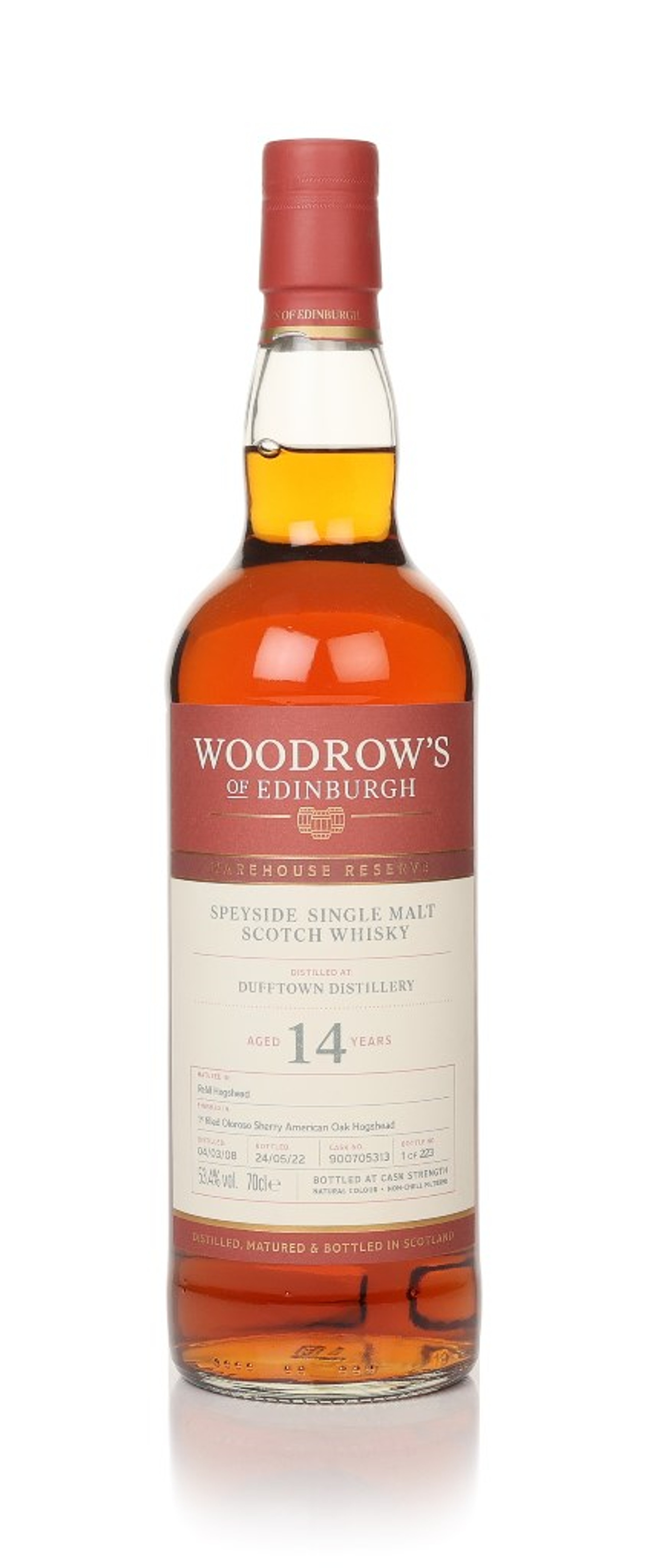 14-year-old single malt from Dufftown, distilled in 2008 and matured for 14 years, including a finish in a first fill oloroso hogshead. The whisky was independently bottled by Woodrow's of Edinburgh in 2022, releasing a total of 223 cask-strength bottles, without added colour or chill filtration.