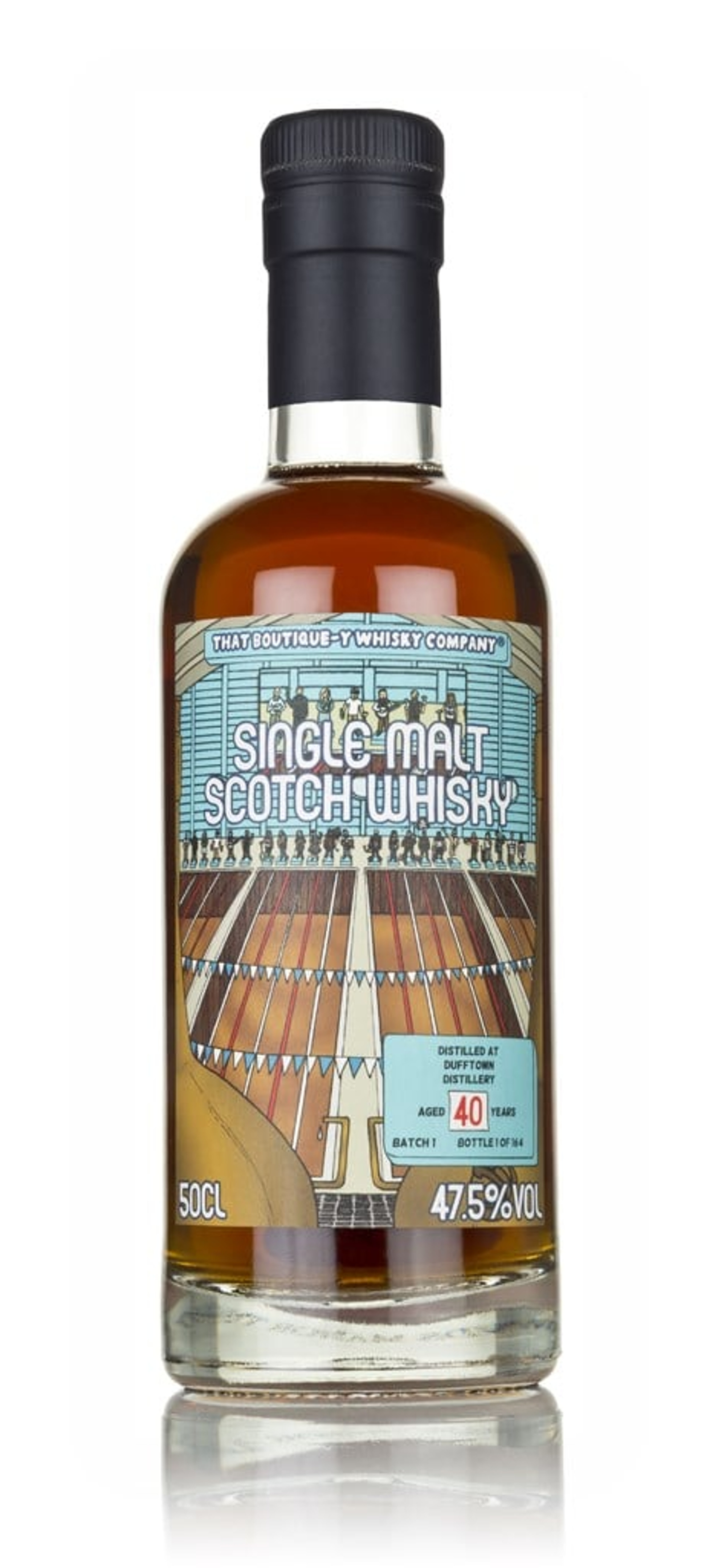 The very first batch of independently bottled Dufftown single malt from That Boutique-y Whisky Company has arrived. Not simply exciting for being the very first for the Boutique-y bunch, it's also a delicious 40 year old expression! The label features a few familiar faces, too...
