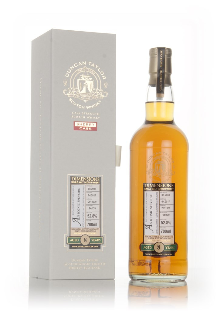 An indie bottling of 8 year old mystery single malt from the Speyside region! This was distilled in August 2008 and matured in a Sherry cask until April 2017 when it was bottled by Duncan Taylor. 139 bottles were produced.