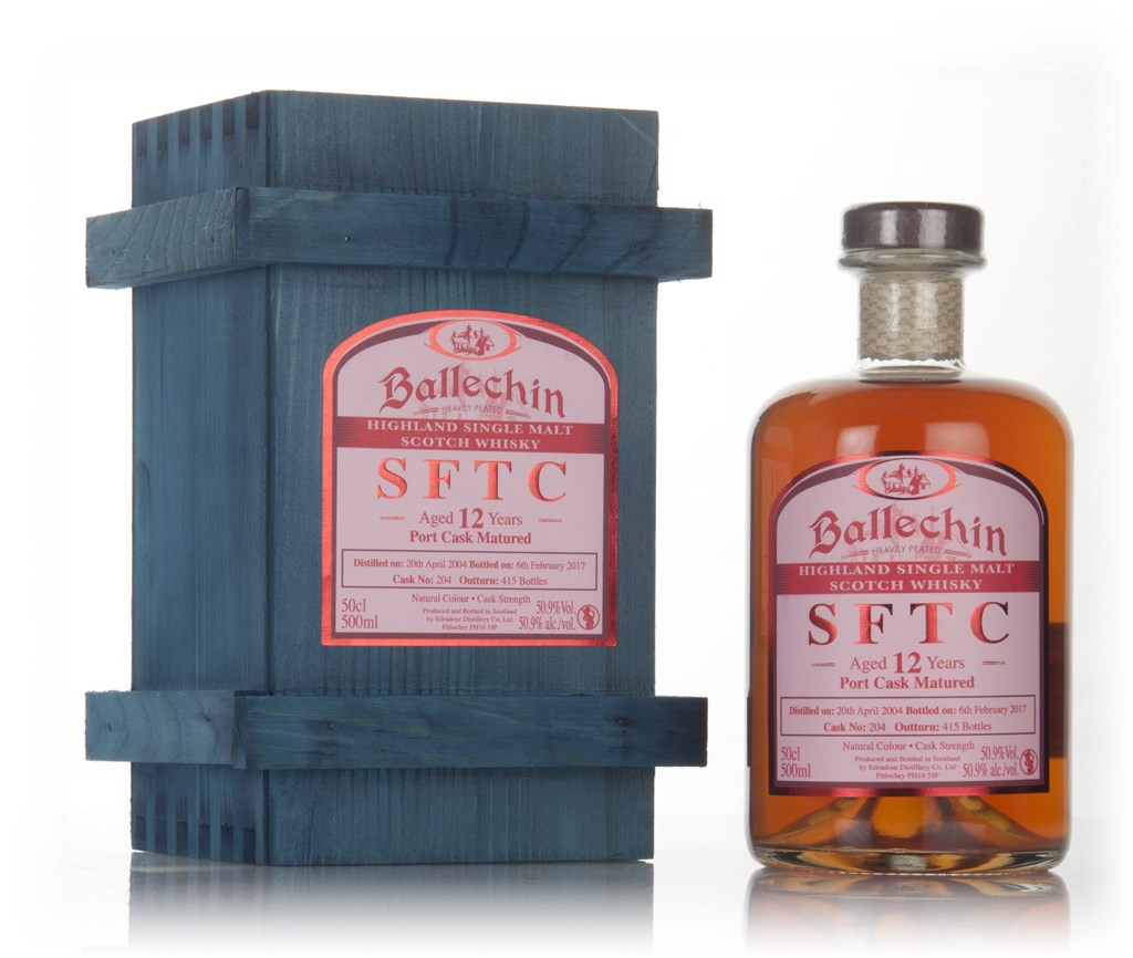 A single Port cask-matured peated single malt from the Edradour distillery (which they released under the Ballechin name), bottled at cask strength. This was distilled in April 2004 and bottled in February 2017, with an outturn of 415 bottles.