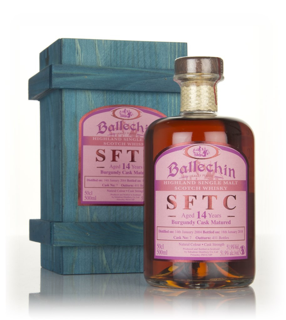 14 year old single malt from Edradour, distilled using peated barley - and as such, it's been released under the Ballechin name! It was filled into a Burgundy wine cask in January 2004 and bottled in January 2018 (four days after its 14th birthday), and bottled at cask strength. 411 bottles were produced.