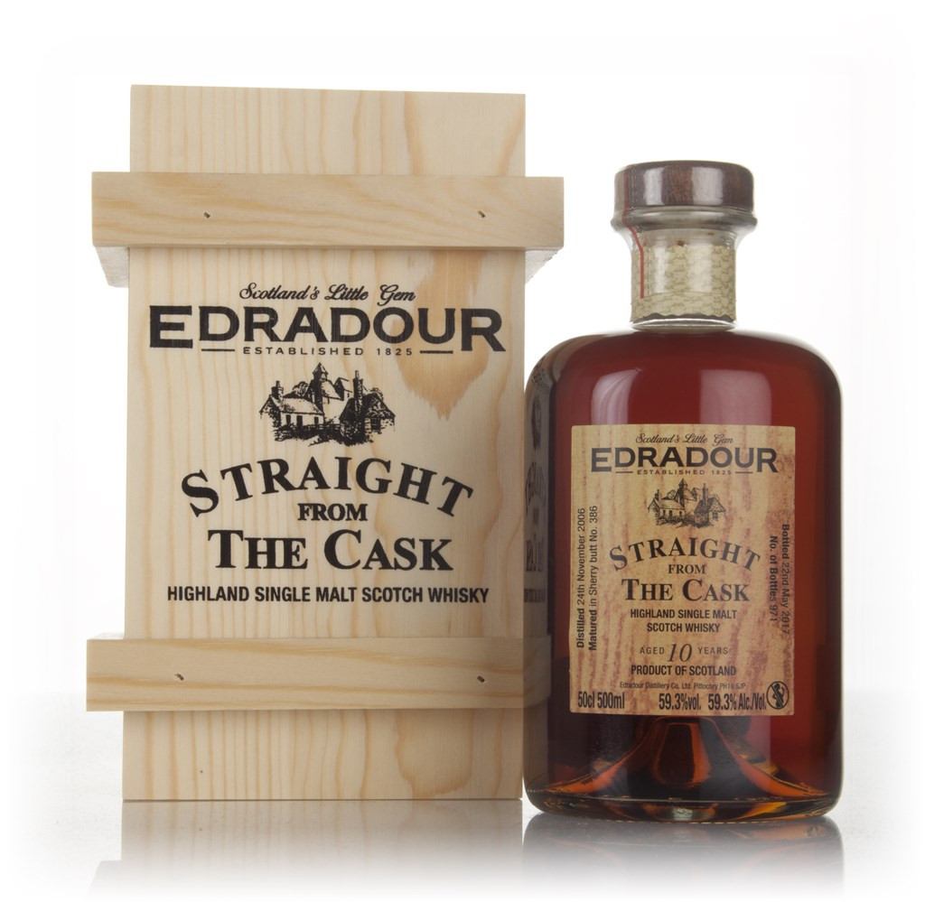 A 10 year old single malt from the Edradour distillery ("Scotland's Little Gem", as the label describes it), aged in a single Sherry butt from November 2006 to May 2017. Following that, it was bottled as part of the Straight From The Cask range with an outturn of 971 bottles - each with their own little wooden crate!