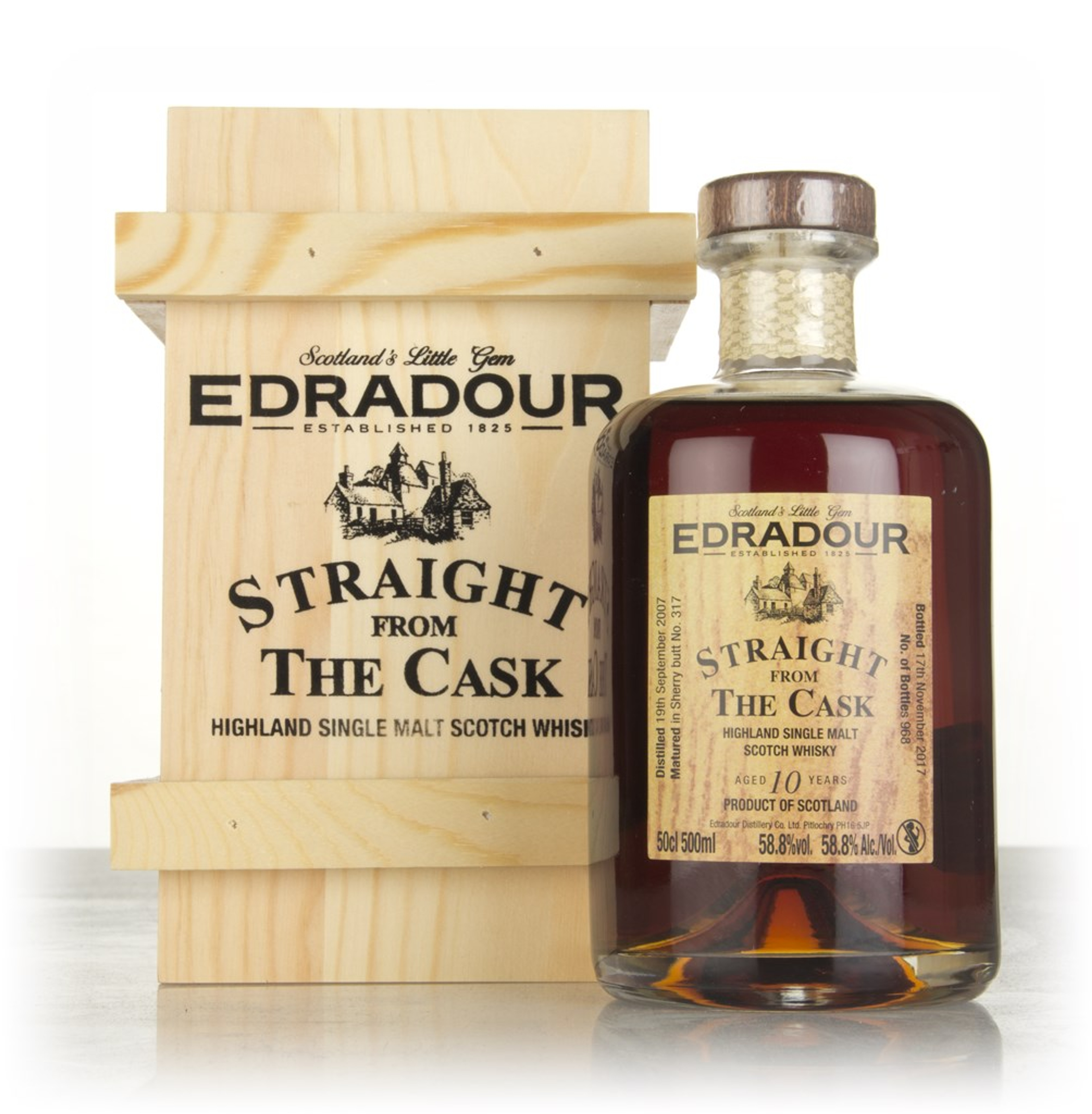 Deeply sherried single malt from Edradour, bottled as part of their Straight from the Cask series. This was distilled in September 2007 and left to mature for 10 years in a sherry butt, until it was bottled at cask strength in November 2017. A release of 968 bottles.