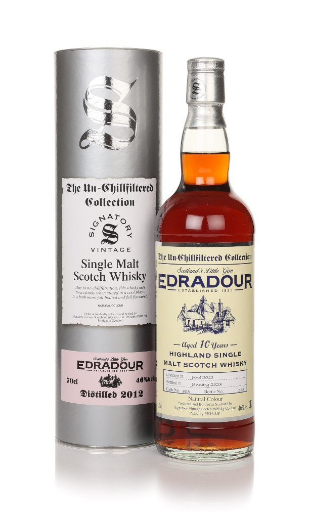 This 10-year-old single malt from Edradour joins Signatory's Un-Chillfiltered Collection. The Highland whisky was distilled in June 2012 and matured in a single cask, with plenty of sherry influence. It was bottled in January 2023, without chill filtration, of course.