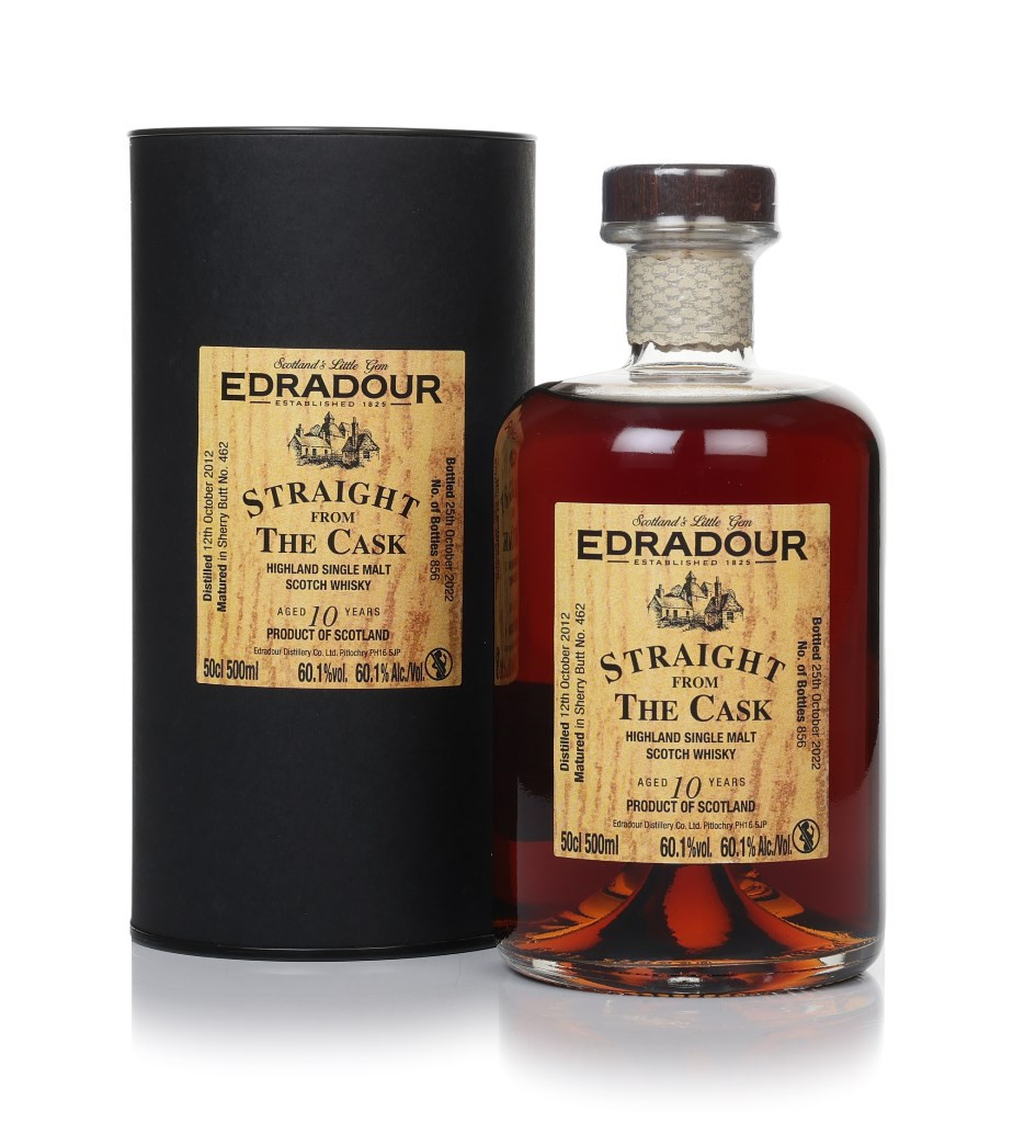 This single malt from Edradour was distilled in October 2012. It matured for 10 years in a single sherry butt until it was opened in October 2022, producing only 856 bottles for the Straight from the Cask series. A punchy cask strength from this Highlander at 60.1% ABV, so a drop or two of water ought to open up the rich sherry character.
