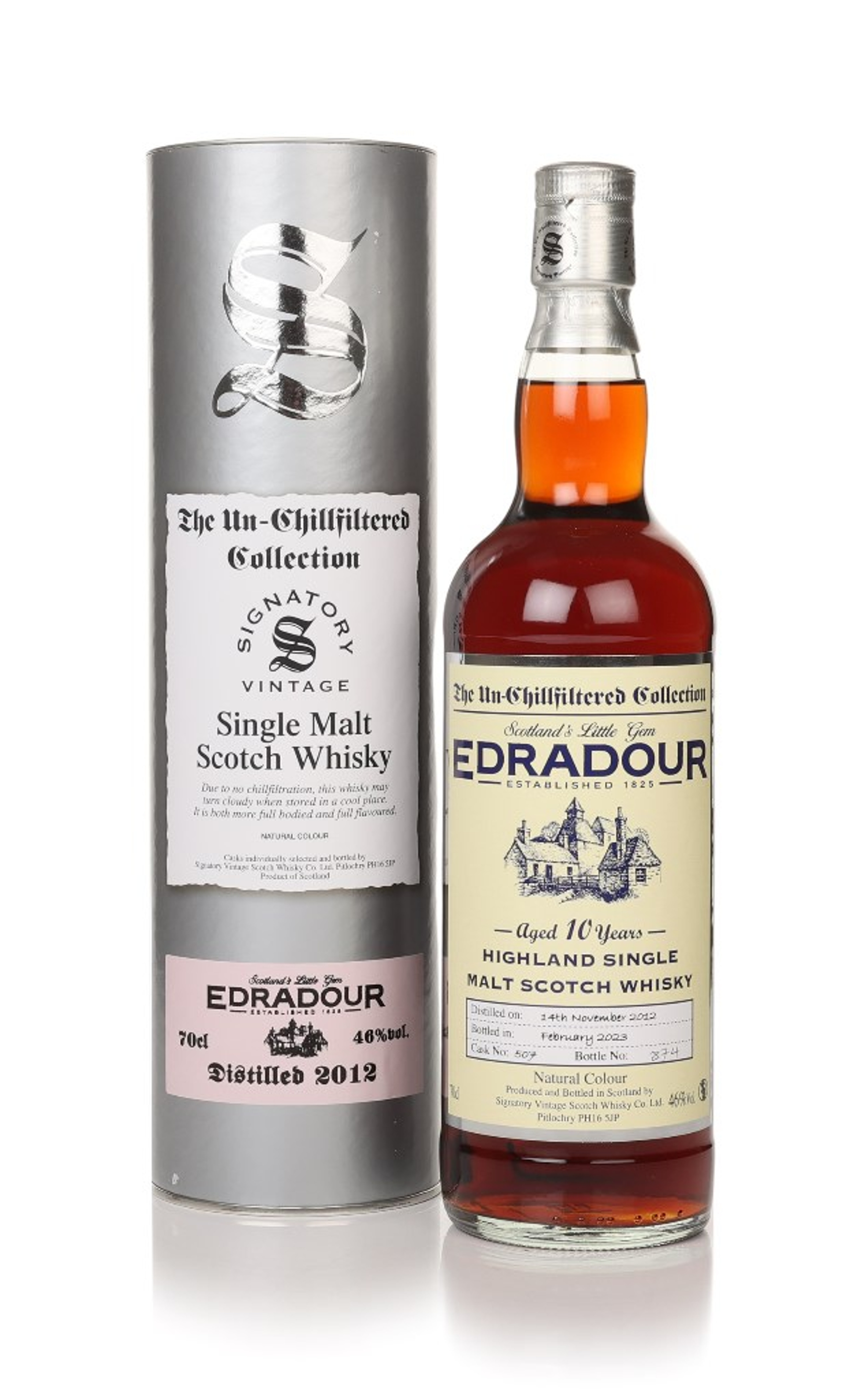 Distilled at Edradour in November 2012, this single malt spent the next decade maturing in a single cask. That cask was cracked open in February 2023 and the whisky was independently bottled by Signatory, without added colour or chill filtration to join its Un-Chilfiltered Collection.