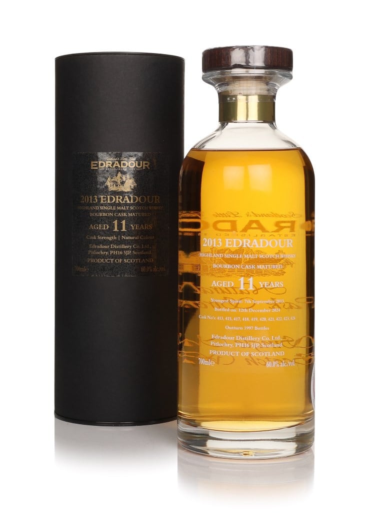 A rather smart decanter of Edradour single malt here! Drawn from a selection of 10 casks, the youngest of which was distilled on 7th September 2013, the whisky was bottled at 11 years old on 12th December 2024. A release of 1,997 cask-strength bottles.