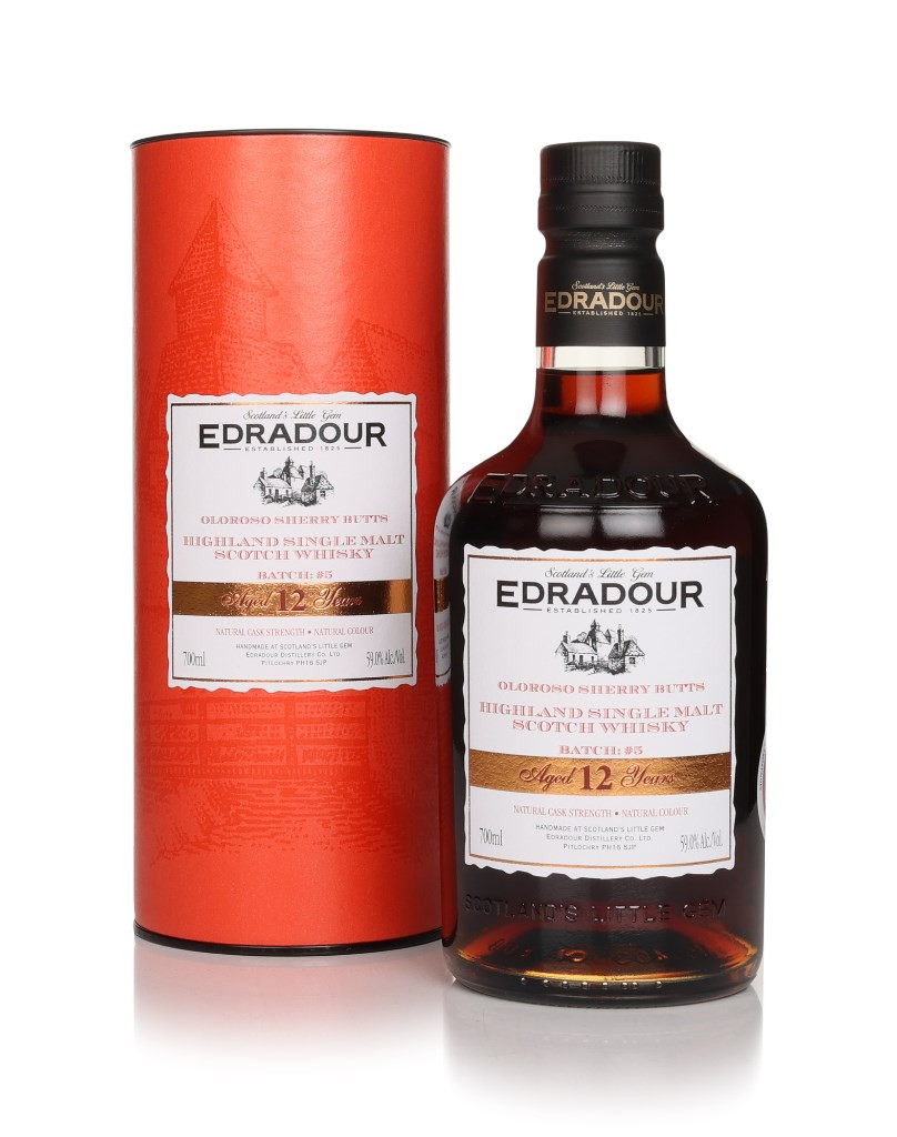 Batch 5 of Edradour's 12 Year Old Sherry Cask Strength single malt whisky here. Matured entirely in first-fill oloroso sherry butts and bottled at a robust cask strength of 59.5% ABV, without added colour – look at the hue! All the sherry! You can expect decadent layers of rich chocolate, stewed fruit, and spice here.