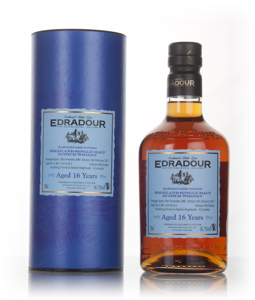 16 year old single malt from the Edradour distillery, finished in casks that previously held Barolo wine. The three casks used for this bottling were filled in November 2000 and bottled in February 2017 after spending 42 months in the aforementioned wine casks. 894 bottles were produced.