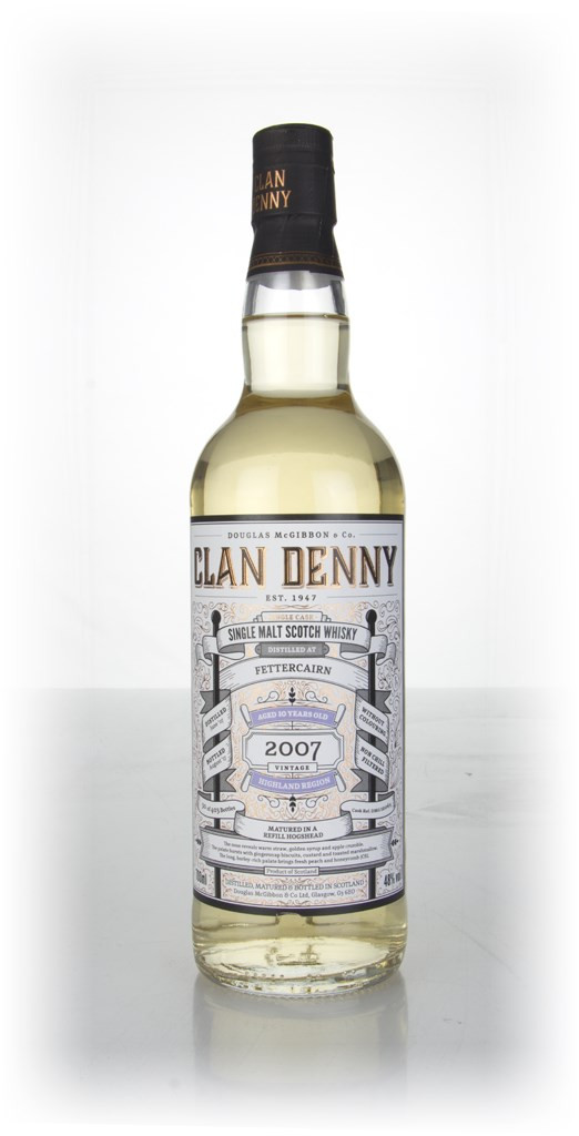 A single cask bottling of Fettercairn single malt, independently bottled by the ever-wonderful Douglas Laing. This expression was distilled in June 2007 and left to age in a refill hogshead for a whole decade, before being bottled in August 2017 as part of the Clan Denny range. 403 bottles were produced.