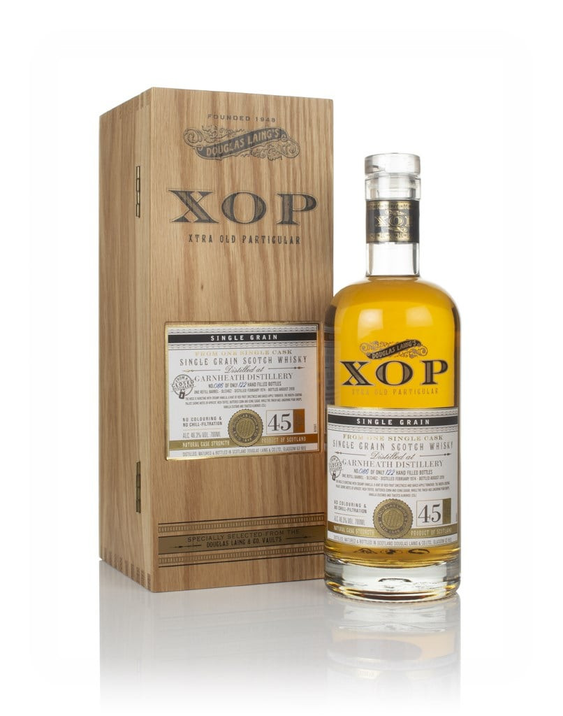 A gorgeous Garnheath single grain Scotch whisky, independently bottled by Douglas Laing as part of the Xtra Old Particular range. This was distilled back in February 1974 and aged in a single refill barrel until August 2019, when it as bottled at cask strength with an outturn of only 122 bottles. Rare stuff from a closed distillery!