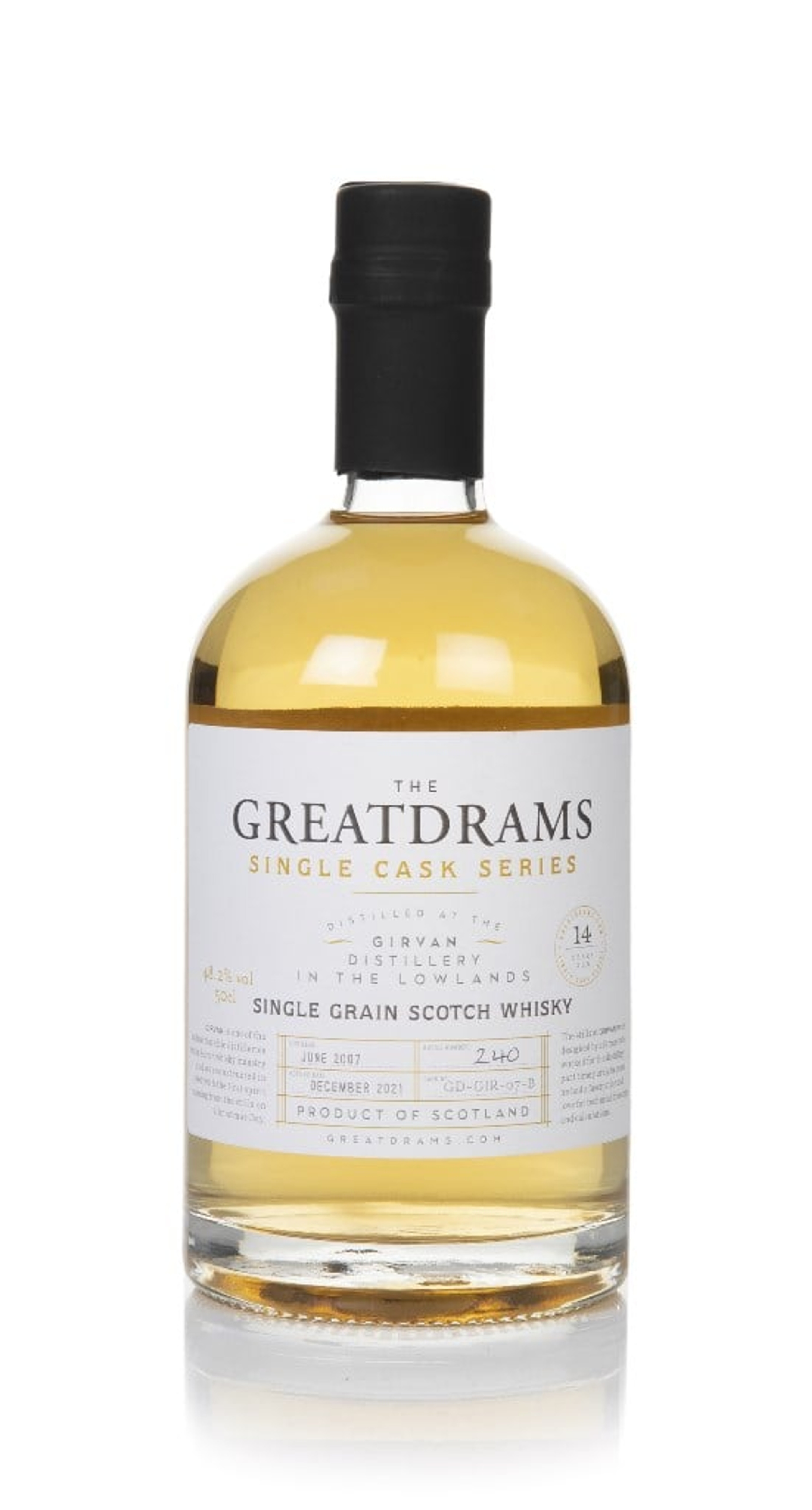 Smashing single grain Scotch whisky from the Girvan Distillery, which has been independently bottled by GreatDrams. This is a 14 year old expression, matured in an ex-bourbon hogshead, and boasting a brilliant buttery flavour profile. Top stuff for the grain faithful.