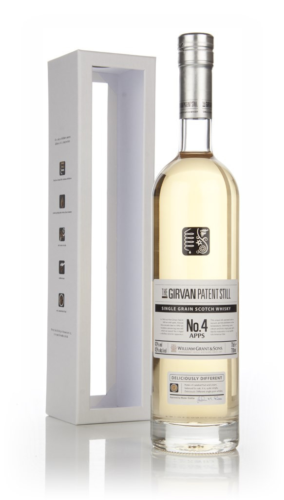 A non-age-statement addition to William Grant & Sons growing collection of single grain Scotch whiskies comes in the shape on The Girvan Patent Still No. 4 Apps, which takes its name from the distillery term for 'Apparatus'. No. 4 Apps has been in use at the Girvan distillery in Ayrshire since 1992. The single grain whisky itself spends its maturation in American oak barrels.