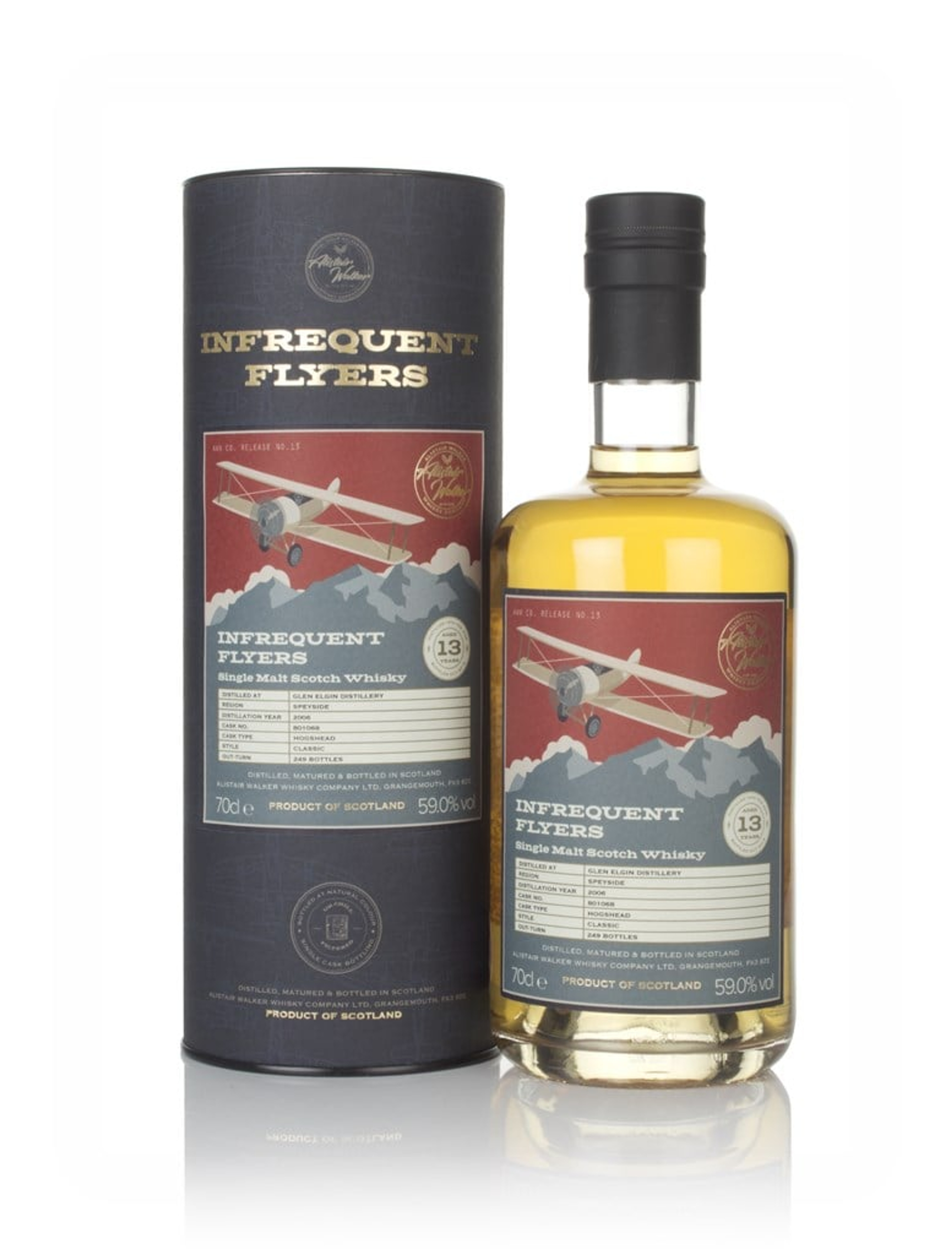 A tasty Speysider from the Glen Elgin Distillery which was brought into existence in 2006. It spent the next 13 years in a single hogshead, until it was bottled in 2019. Alistair Walker released the whisky as part of the Infrequent Flyers series, with 249 bottles released at cask strength, 59% ABV.