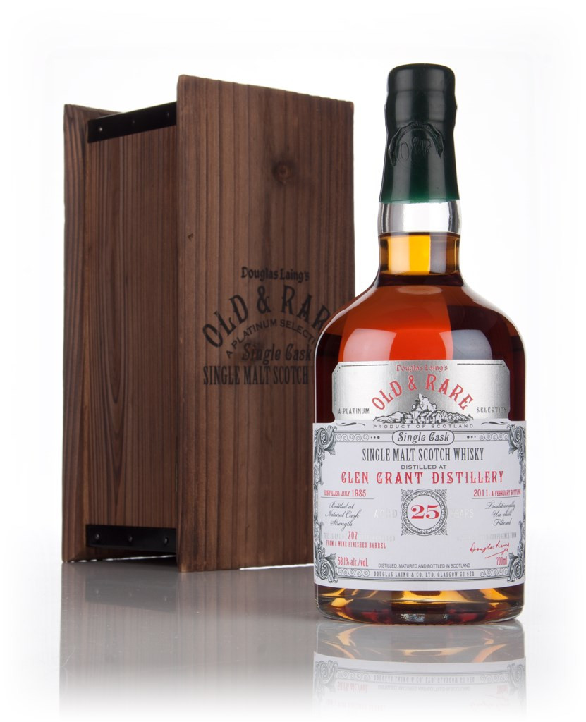 A rich, tasty Glen Grant distilled in July 1985 and aged in wine-finished barrel for 25 years before bottling in February of 2011 at natural cask strength for Douglas Laing's Old and Rare Platinum Selection.