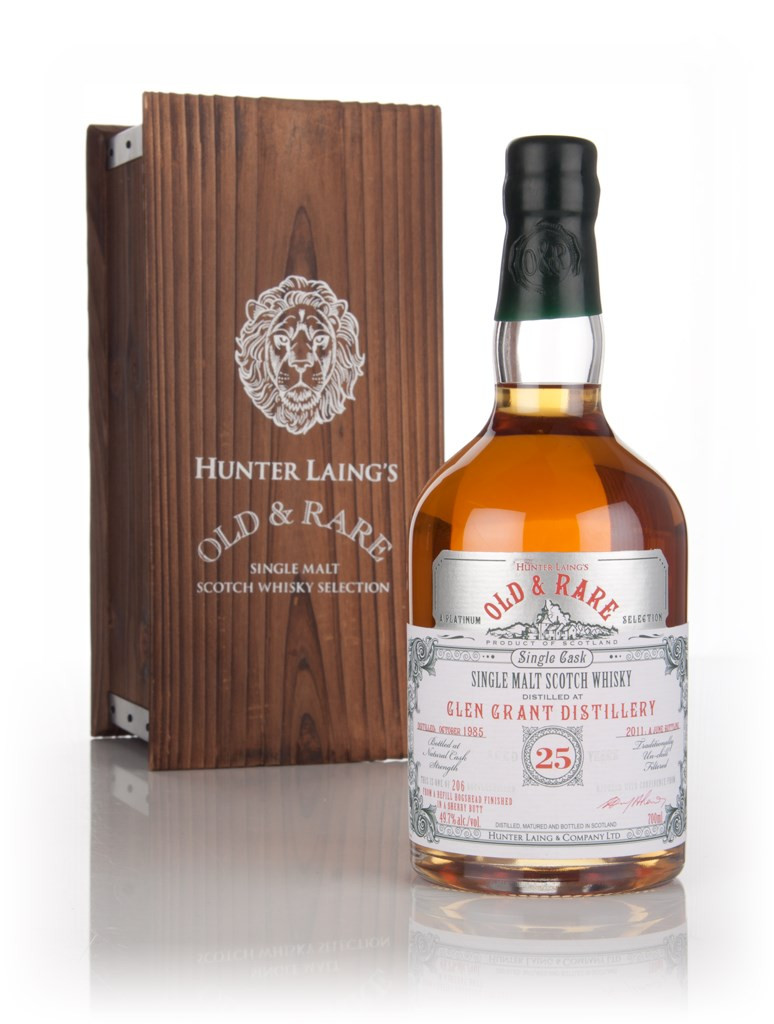 A rather intruiging bottling of Glen Grant single malt Scotch whisky, presented by Hunter Laing for their Old & rare range. It was distilled at the distillery in Speyside in October 1985 and filled into a refill hogshead cask. The whisky was bottled at 25 years old in June 2011, but not before enjoying a finishing period in a Sherry butt. 206 bottles were produced.