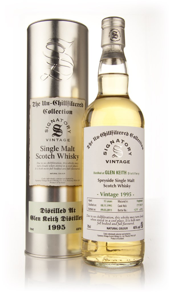 This Glen Keith was distilled on the 8th November 1995, and it was aged in a pair of hogsheads before bottling by Signatory in 2011. A release of 782 bottles.