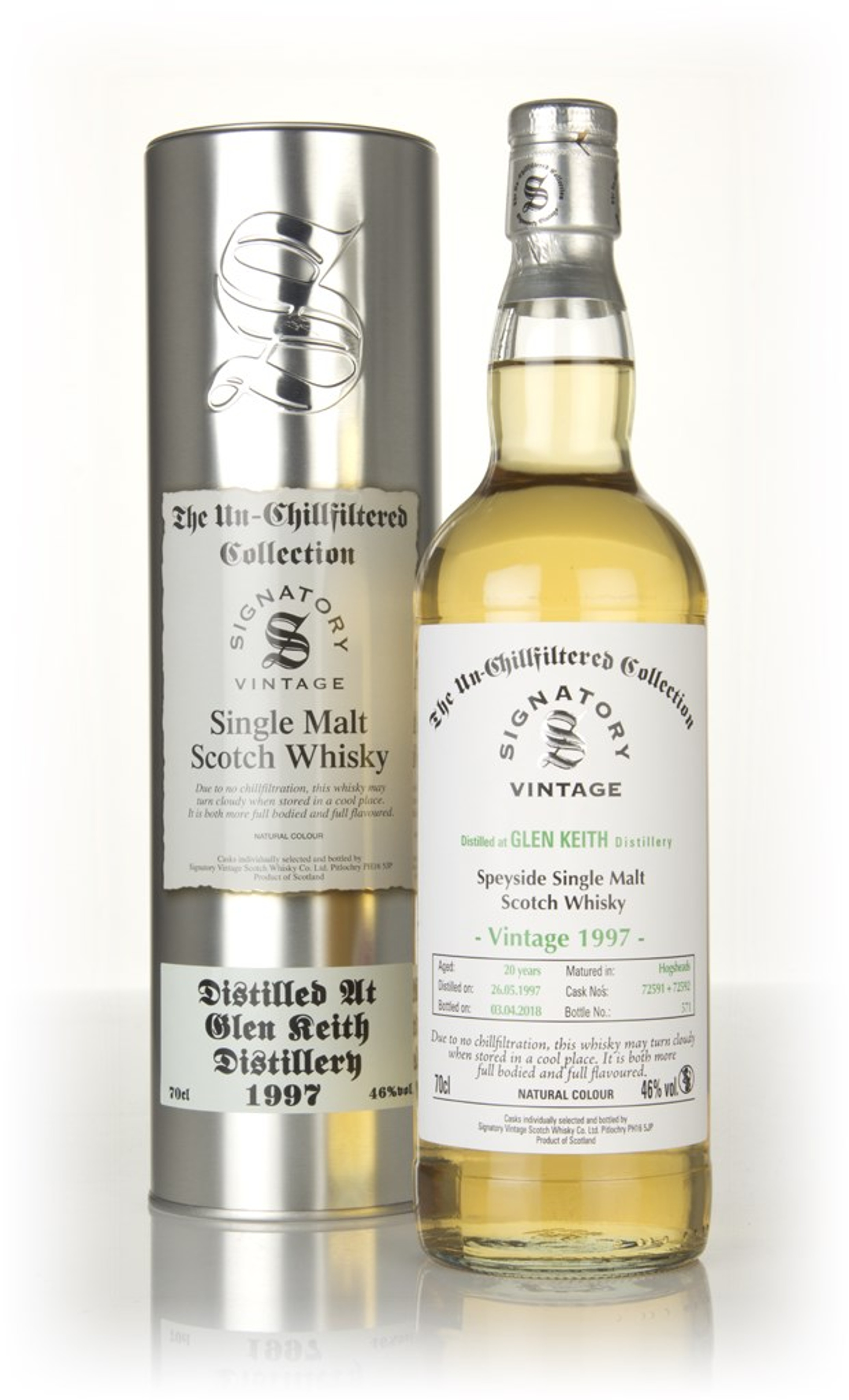 From the Glen Keith distillery comes this 20 year old single malt Scotch whisky, independently bottled by those lovely folks over at Signatory. It was distilled in May 1997 and matured in a pair of hogshead casks until April 2018, when it was bottled for the Un-Chillfiltered Collection.