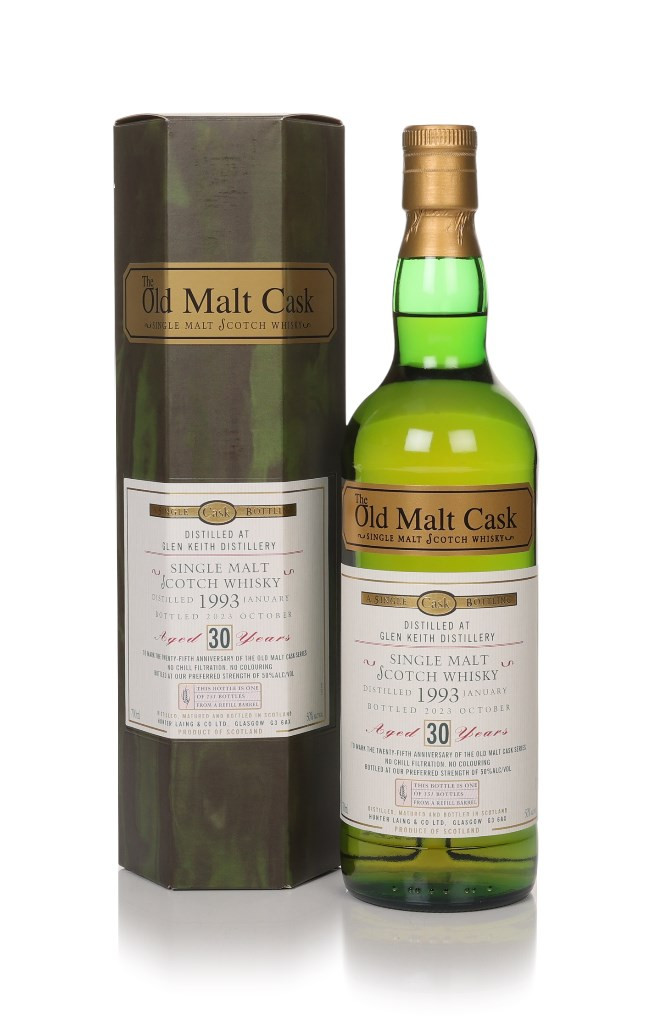 An old Glen Keith single malt here bottled for the Old Malt Cask series by Hunter Laing. It's 25 years since the range was launched and this is one of the celebratory bottles, bottled at 50% ABV at 30 years old. A release of 151 bottles.