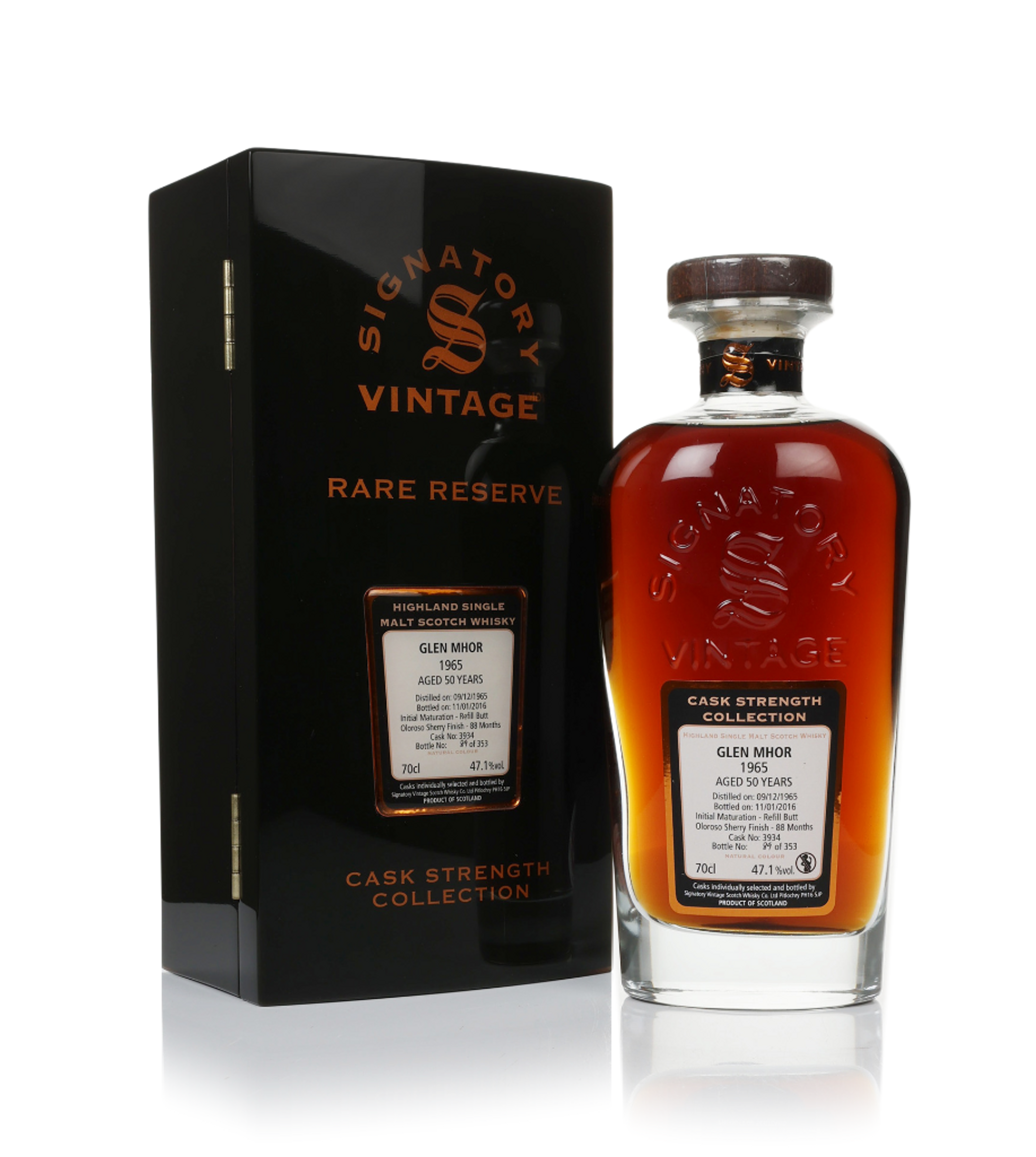 Cor! Check out this impressive single malt from Glen Mhor! Distilled all the way back on 9th December 1965 – the same week that young rockers The Who were tearing their way up the charts with My Generation. After initially maturing in a refill butt, the whisky spent a whopping 88 months finishing in an Oloroso sherry cask, until it was independently bottled by Signatory in January 2016. A total of 353 bottles were released for Signatory's Cask Strength Collection Rare Reserve.