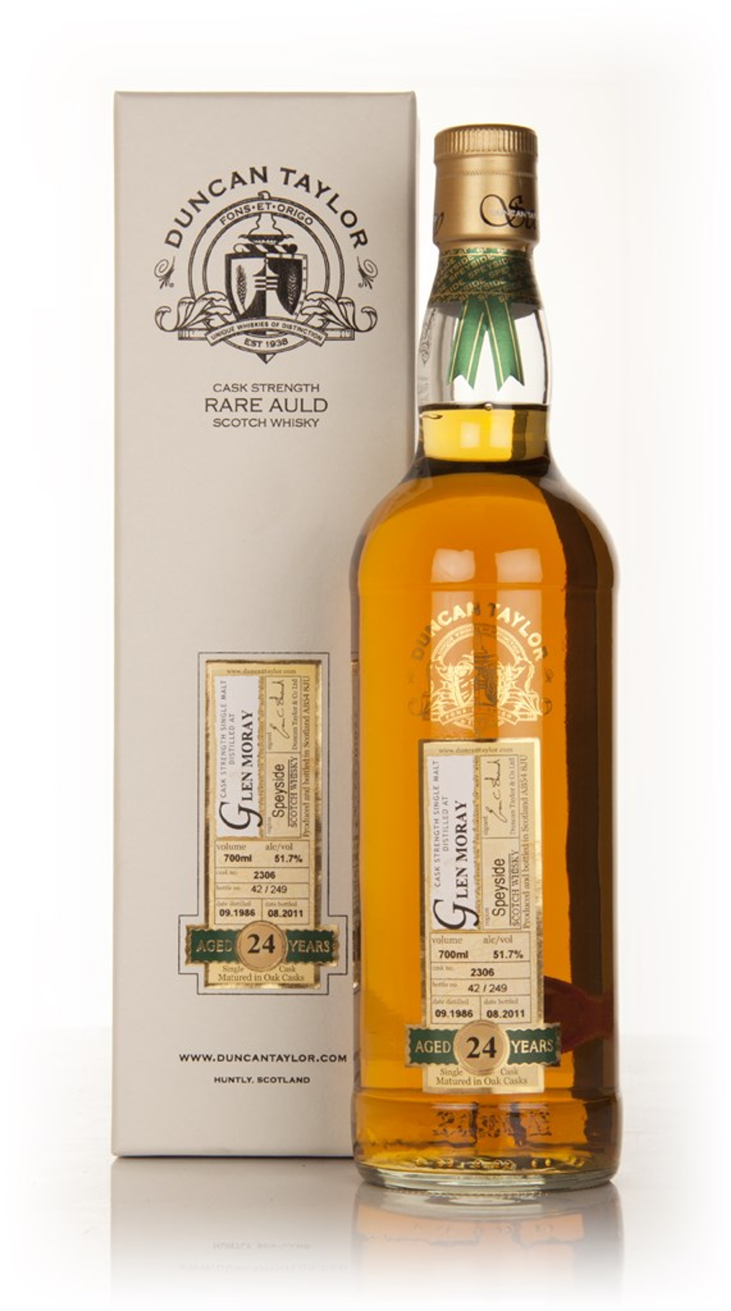 Distilled at Glen Moray in September 1986, this was aged for 24 years in cask 2306 before bottling by Duncan Taylor in August of 2011. A cask strength release of 249 numbered bottles.