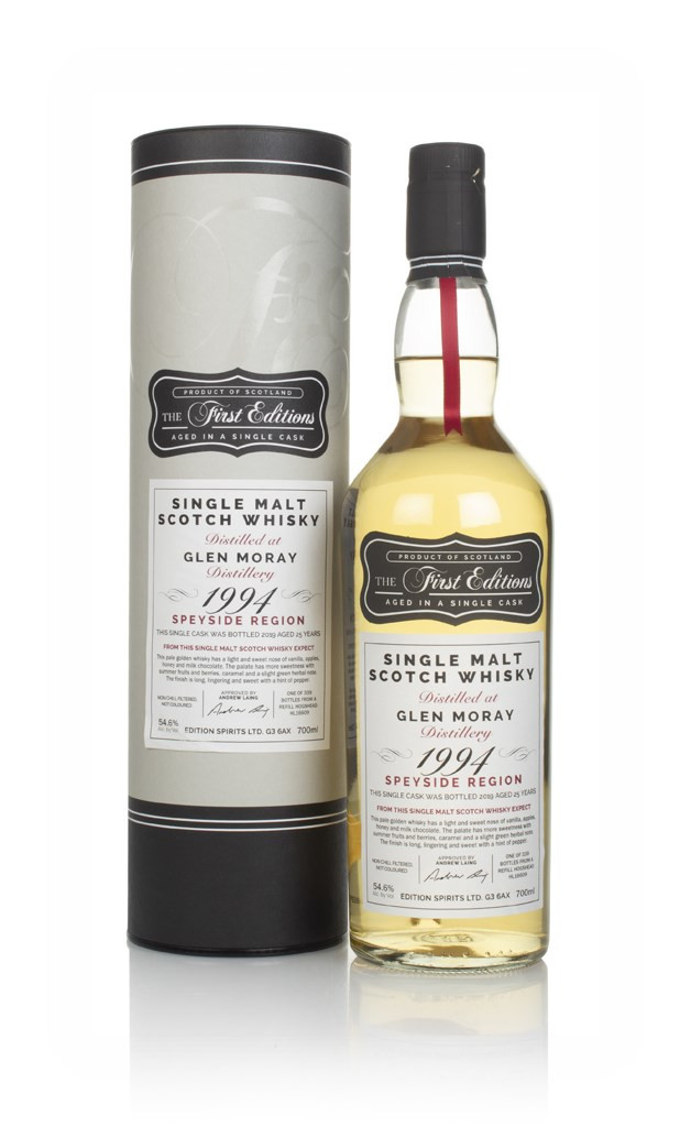 A single cask indie Glen Moray here, distilled in 1994. The Speysider spent a quarter of a century resting in a refill hogshead, until Hunter Laing bottled it up for its First Editions series. A limited 339 bottles were released at a generous 54.6% ABV, full of that gentle Speyside sweetness.