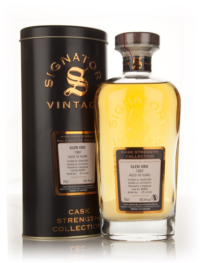 An addition to Signatory's Cask Strength Collection. This Glen Ord single cask single malt Scotch whisky was distilled in April 1997 and aged for 16 years until it was bottled in October 2013. Only 244 bottles were produced.