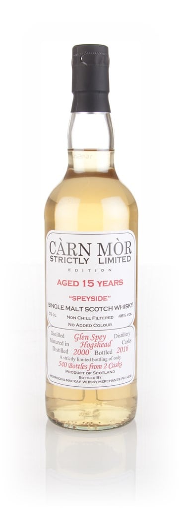 This is a Càrn Mòr bottling of 15 year old Glen Spey single malt, drawn from a pair of casks laid down in 2000 and bottled in 2016. 540 bottles were released as part of the Strictly Limited range.