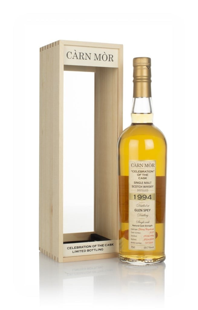 Distilled at Glen Spey on 9 June 1994, this single malt then rested in a sherry hogshead for nearly a quarter of a century. When the whisky was 24 years of age, on 29 April 2019 it was bottled by Càrn Mòr for the Celebration of the Cask range. The hogshead yielded only 230 bottles at cask strength, a warming 59.7% ABV.