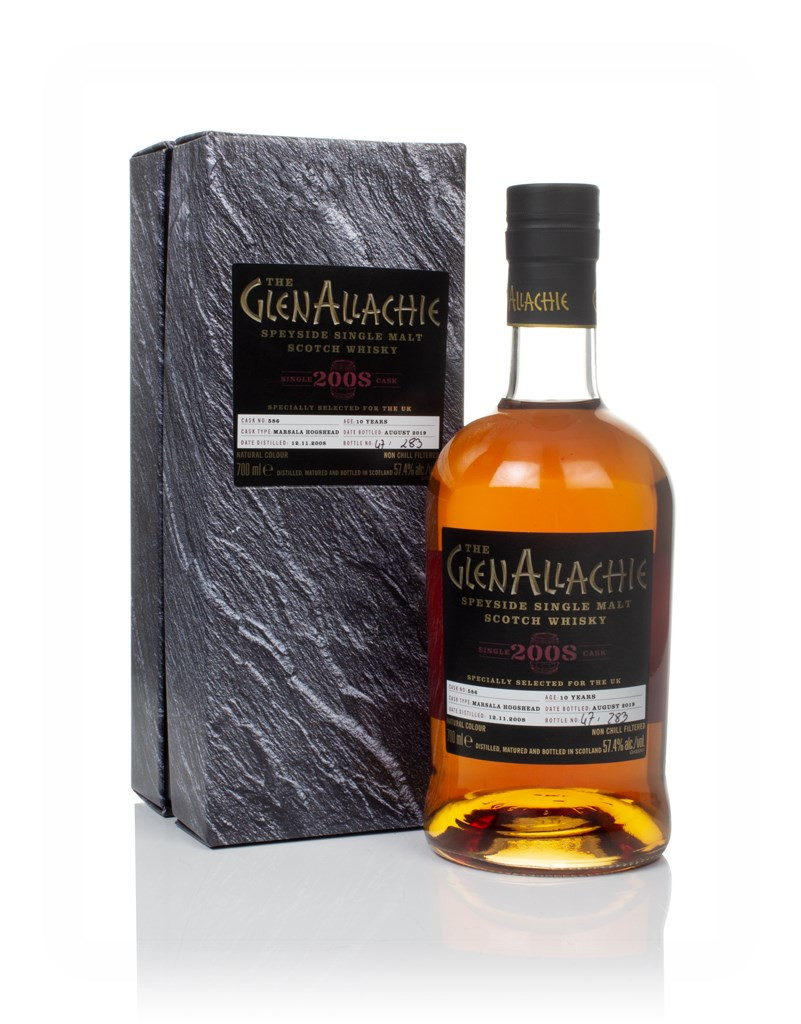 Part of GlenAllachie's single cask series comes this 10 Year Old single malt! The Speysider was distilled in 2008 and then matured in a single Marsala hogshead for a decade. It was bottled in August 2019 at cask strength, with an outturn of 283 bottles at 57.4% ABV. Expect lots of honeyed, syrupy notes in this one.