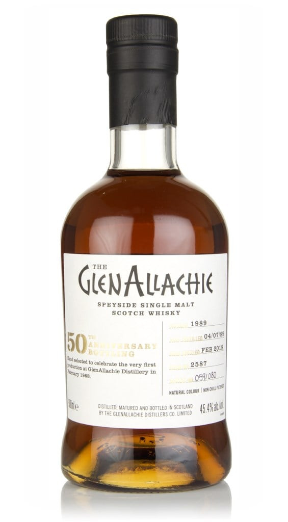 28 year old single malt from GlenAllachie, released alongside five more bottlings in celebration of the distillery's 50th anniversary. This one was distilled in July 1989 and matured in a single hogshead until it was bottled in February 2018, with just 80 bottles released. These expressions were also the first to be released by GlenAllachie after the distillery was purchased by Billy Walker.