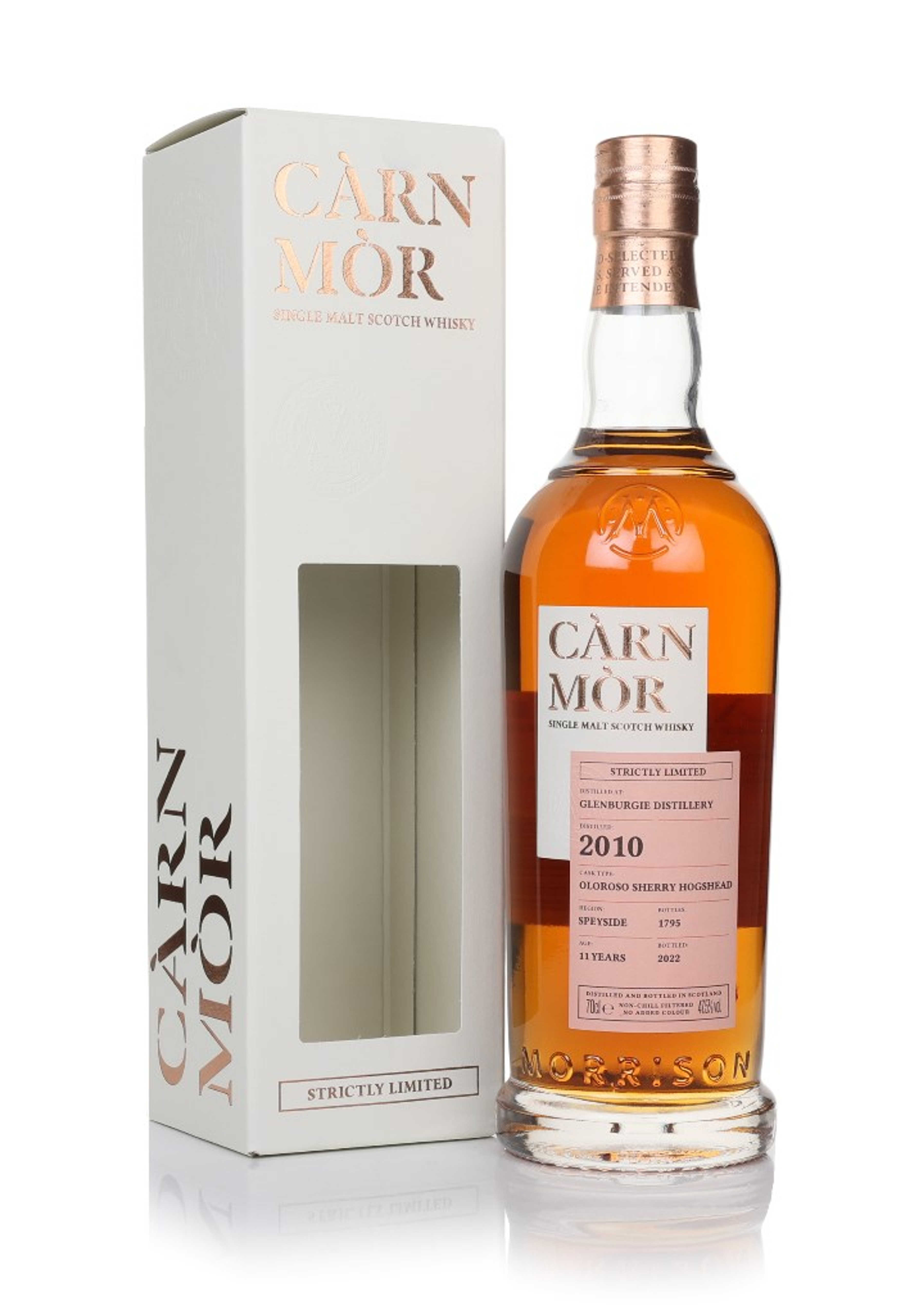 Glenburgie single malt, matured for 11 years between 2010 and 2022 in ex-oloroso sherry casks before being independently bottled by Càrn Mòr for its Strictly Limited series.