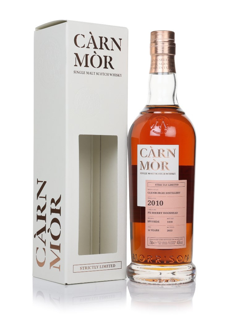 Distilled at Glenburgie in 2010, this single malt spent a dozen years resting in a Pedro Ximénez hogshead. A total of 1,418 bottles were drawn from the cask in 2022 by indie bottler Càrn Mòr, joining its Strictly Limited collection.