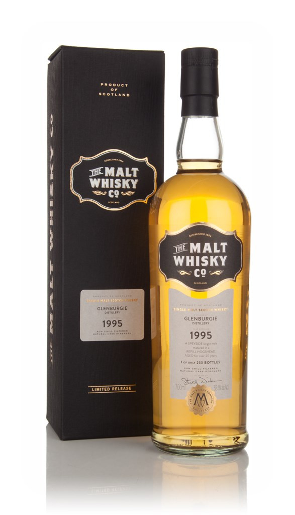 A 20 year old Glenburgie single malt Scotch whisky, which was allowed to age in a refill hogshead. 233 bottles were produced, independently bottled by The Malt Whisky Company.