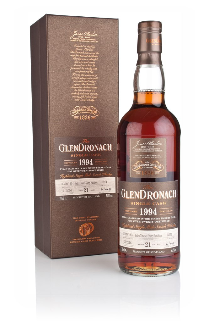 Filled into a Pedro Ximénez Sherry Puncheon on 9th September 1994, this single cask GlenDronach was bottled in January 2016 as part of their 13th batch of single cask releases. The outturn was 664 bottles.