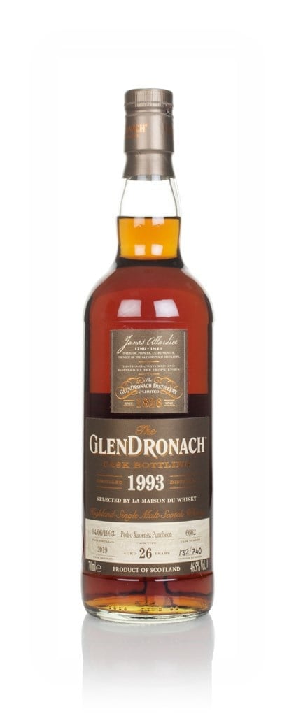 This impressive GlenDronach here began its life in June 1993 and was aged in a single Pedro Ximénez sherry puncheon for over a quarter of a century! It was bottled in 2019 exclusively for La Maison du Whisky, with the extremely well-sherried whisky bottled at 46.5% ABV, with an outturn of 740 bottles.