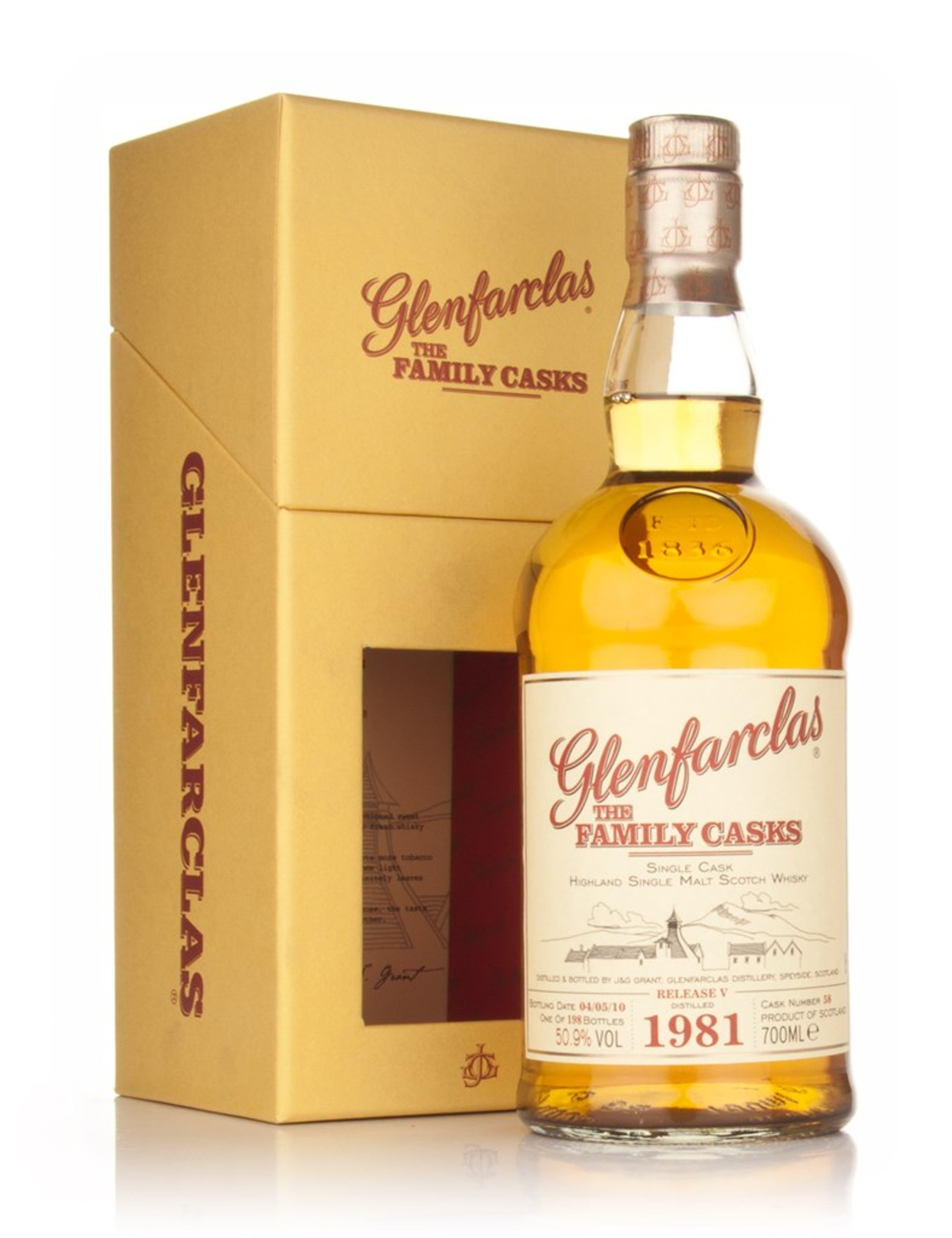 The fifth release of Glenfarclas 1981, this whisky was aged in a single plain hogshead (cask 58), and it was bottled at natural cask strength in 2010. It marks a change from many of the family casks as it's bottled from a plain cask, and not a sherry cask.