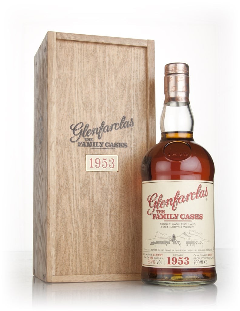 In Autumn of 2007, Glenfarclas released a massive back catalogue of vintage casks. There are 43 between years 1952 to 1994. This single malt Speyside whisky was distilled in 1953.