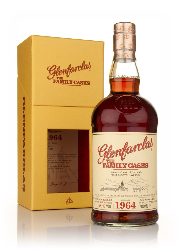A single cask from Glenfarclas, this was distilled in 1964 and matured in a sherry butt before release as part of the Family Cask Collection. There are just 415 bottles of this, bottled on the 27th February 2007 from cask number 4717.